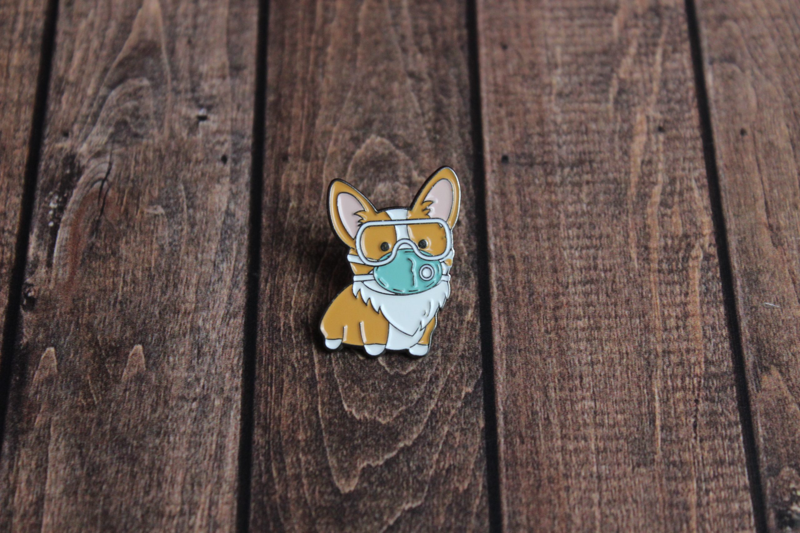Эмалированный значок "Корги в маске"