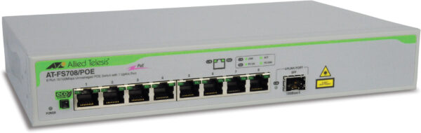 Коммутатор Allied Telesis 8 Port 10/100 unmanaged POE switch with 1 SFP uplink UK Power Cord