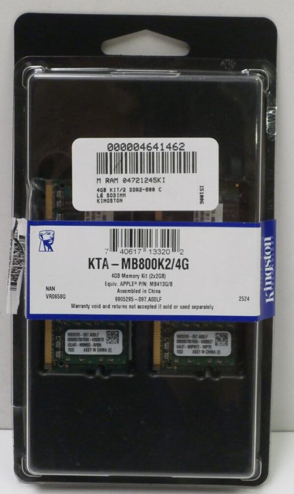 Оперативная память Kingston DDR2 4GB (2x2GB) PC2-6400 800МГц SODIMM для ноутбуков APPLE (KTA-MB800K2/4G)
