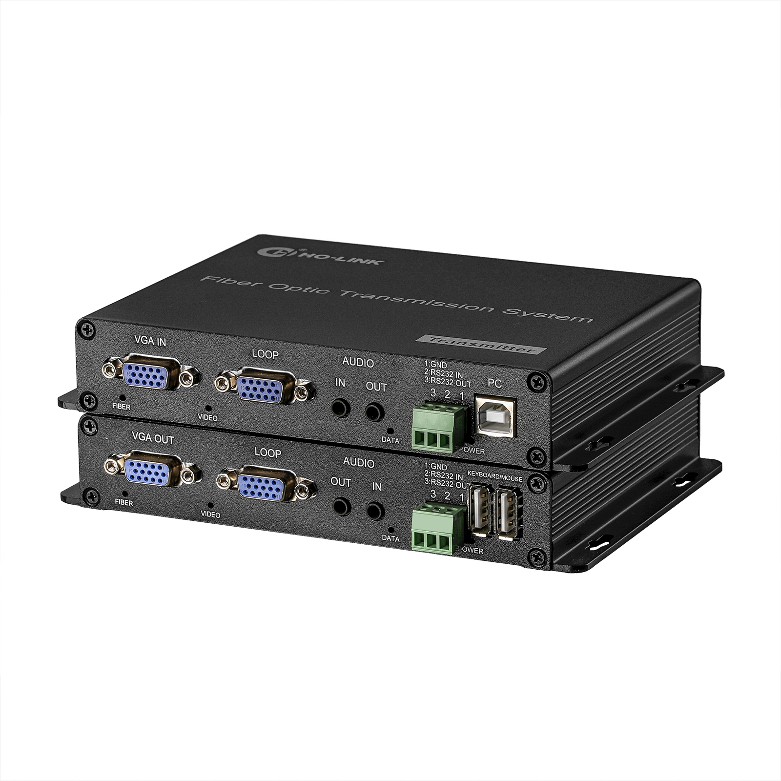 Волоконно-оптический преобразователь Ho-link 1-канальный VGA-выход, 1-канальный аудиовыход 3,5 мм, 1-канальный интерфейс RS232, KVM (HL-ViL-Plus)